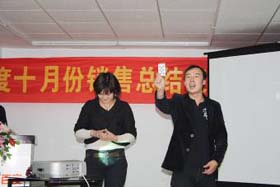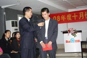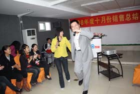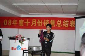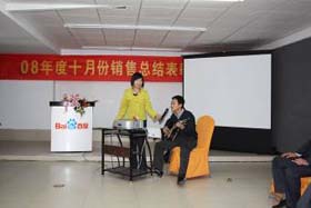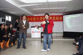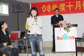 涼風習習,秋雨綿綿澆不滅我們涌動的青春、火熱的激情。2008年11月8號下午,我司十月份銷售總結(jié)表彰大會順利拉開了帷幕。百度渠道部經(jīng)理晟皞先生為此次會議作了一番別具風格的致詞,與會人員無不熱情高漲。與其說是會議不如說是狂歡派對,大家不由自主地敞開心扉、釋放激情。