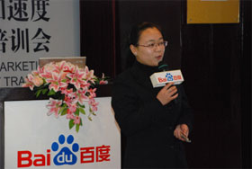寒流入侵,涼風(fēng)習(xí)習(xí),吹不涼百度人暖暖的心田。2008年11月28號,營銷加速度——百度營銷專家培訓(xùn)會(huì)在我司三樓商務(wù)會(huì)所拉開了帷幕。眾多企業(yè)家朋友齊聚一堂,敞開心扉,交流分享。我司美女主持張捷女士擔(dān)任會(huì)議主持,貼心的問候,朝氣的笑容很快帶動(dòng)了會(huì)場的氣氛。我司丁溱平女士和盧全女士擔(dān)任此次會(huì)議的主講,兩位主講精彩而深動(dòng)的演講吸引了在場的每位客戶。