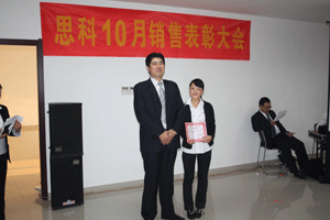 11月7日下午,思科10月銷售表彰大會(huì)在鹽城國(guó)際軟件園5樓召開(kāi)。這次我們以別開(kāi)生面的方式開(kāi)展了這次銷售大會(huì)。會(huì)議開(kāi)始,我們并沒(méi)有向往常一樣頒發(fā)獎(jiǎng)項(xiàng)。在主持人的帶領(lǐng)下,我們玩了大量的團(tuán)隊(duì)游戲,游戲提高了我們的熱情,大家都興致高漲,不僅放松了一個(gè)月以來(lái)緊張的心情,也給我們帶來(lái)了無(wú)比的快樂(lè)。