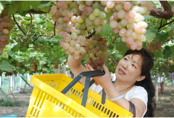 摘累了,豐收了,先讓我來(lái)嘗一下提子的甜蜜