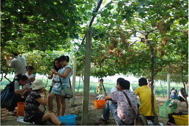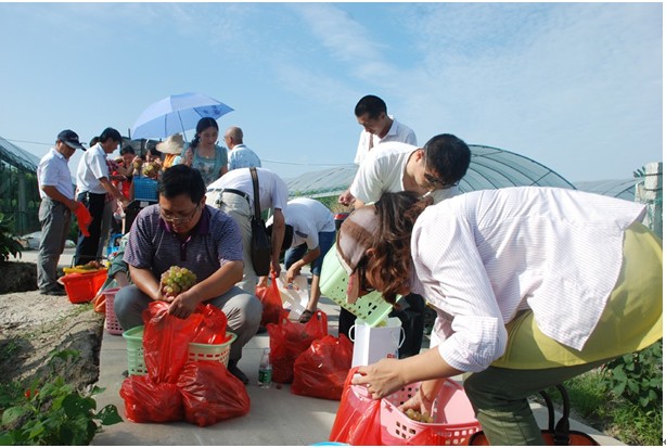午宴之后,客戶(hù)與員工乘坐營(yíng)銷(xiāo)體驗(yàn)車(chē)和大巴來(lái)到仰徐農(nóng)業(yè)科技有限公司的葡萄園,收獲這次的豐收之旅。