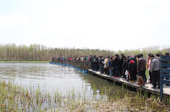 我們邊走邊看邊玩圍繞著濕地公園整整走了15里路,聽起來有點(diǎn)遠(yuǎn),但是大家都沒覺得遠(yuǎn),因?yàn)橹挥杏米约旱碾p腳去迎接大自然的色彩,才能真正感受春天的魅力。