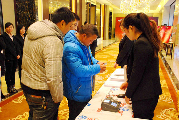 二維碼簽到區(qū),參會客戶簽到有序進行中