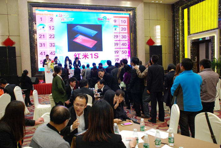 現(xiàn)場企業(yè)家向工作人員咨詢百度移動搜索推廣